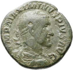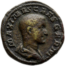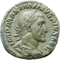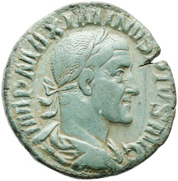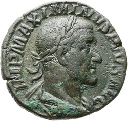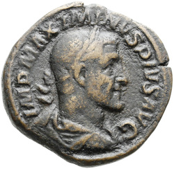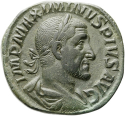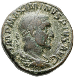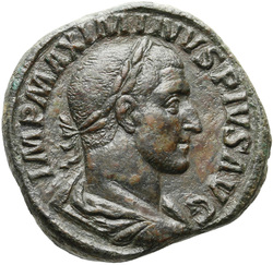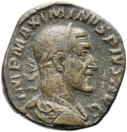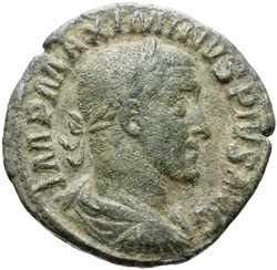 IMP MAXIMINVS PIVS AVG, Bust of Maximinus I, laureate, draped, cuirassed, right