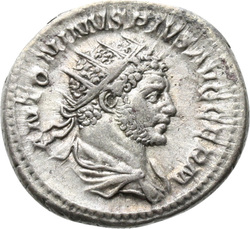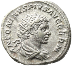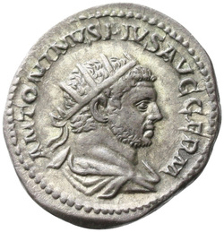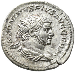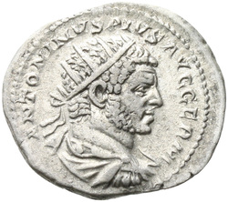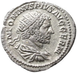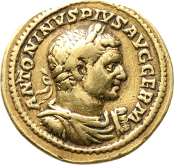 ANTONINVS PIVS AVG GERM, Bust of Caracalla, laureate, draped, cuirassed, with aegis, right, viewed from front