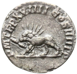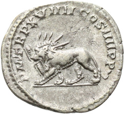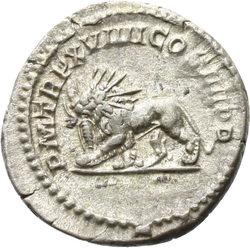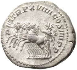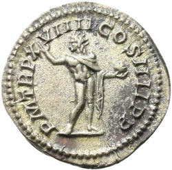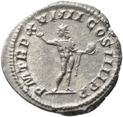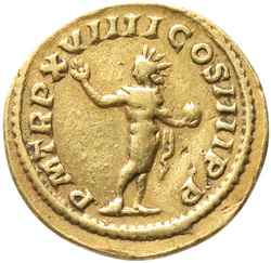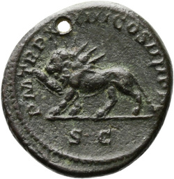P M TR P XVIIII COS IIII P P S C, Jupiter, naked to waist, seated left, holding Victory in extended right hand and sceptre in left hand; at feet, left, eagle