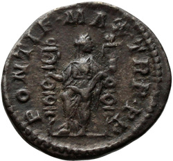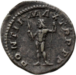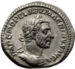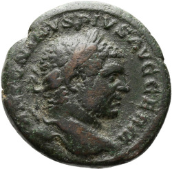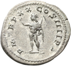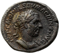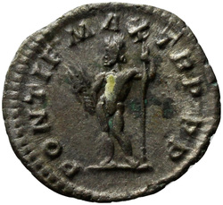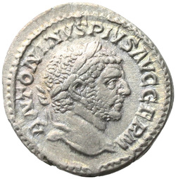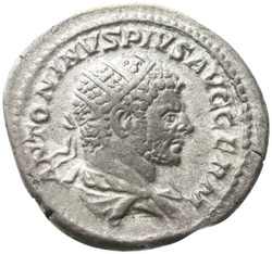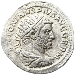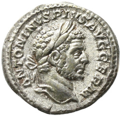 ANTONINV[S] PIVS AVG GERM, Bust of Caracalla, radiate, draped, cuirassed, right, viewed from rear