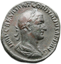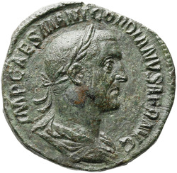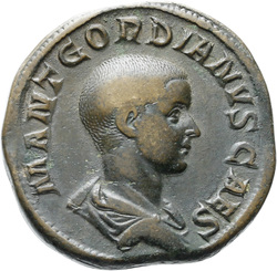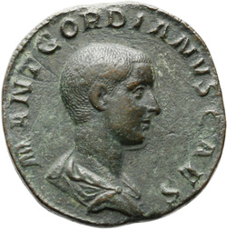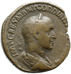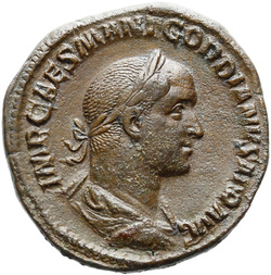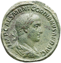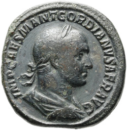 IMP CAES M ANT GORDIANVS AVG, Bust of Gordian III, laureate, draped, cuirassed, right
