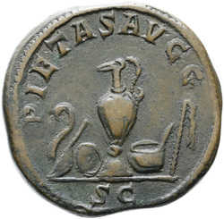 [I]OVI CONSERVATORI S C, Jupiter, nude except for cloak around shoulders, standing front, head left, holding vertical sceptre in left hand and thunderbolt in right hand over Gordian III, togate, standing left