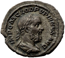 IMP CAES D CAEL BALBINVS AVG, Bust of Balbinus, laureate, draped, cuirassed, right