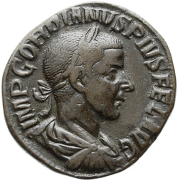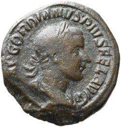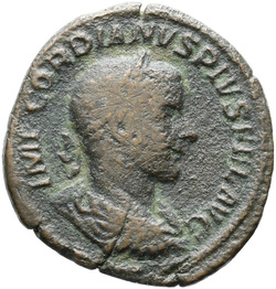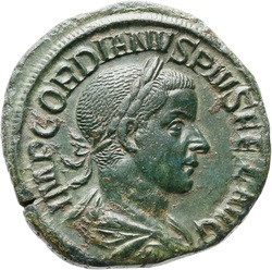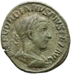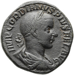 IMP GORDIANVS PIVS FEL AVG, Bust of Gordian III, laureate, draped, cuirassed, right