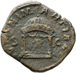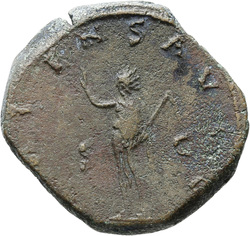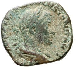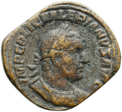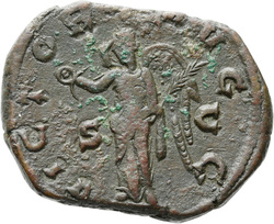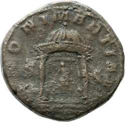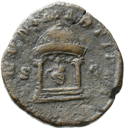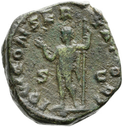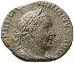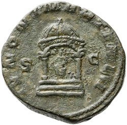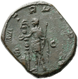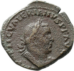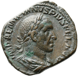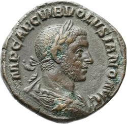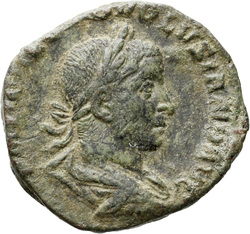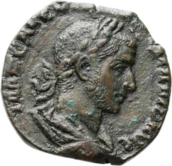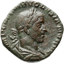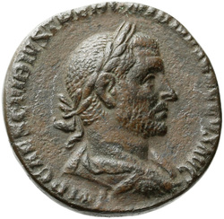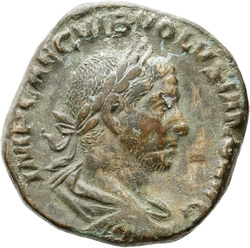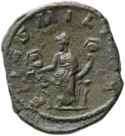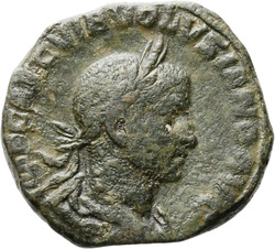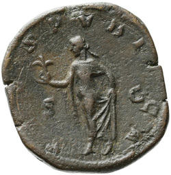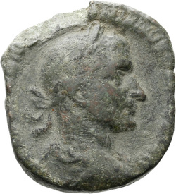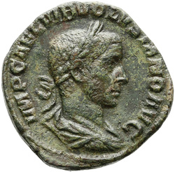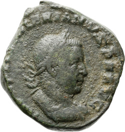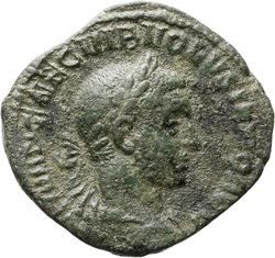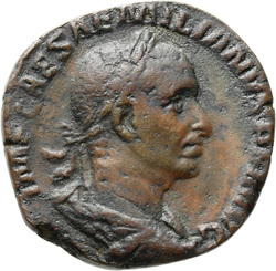 [P] M TR L [?] [P]OT S C, Aemilian, veiled, togate, standing left, sacrificing out of patera in right hand over altar and holding roll in left hand