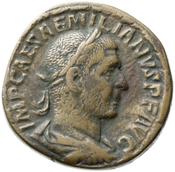 IMP AEMILIANVS PIVS FEL AVG, Bust of Aemilian, laureate, draped, cuirassed, right