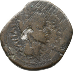 III·VIR·R·P·C·COS·DESIG·ITER·ET·TERT, Radiate head of Sol right; around, inscription. Border of dots.