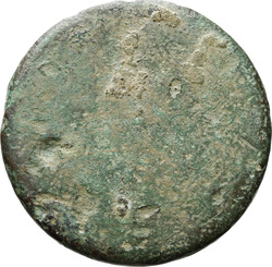 S C, Triumphal arch, showing garlanded front and left side; above, the Emperor in a quadriga escorted by Victory, holding wreath and palm, on right and Pax, holding caduceus and cornucopiae, on left; just below the quadriga on extreme left and right, two small figures of soldiers; on left side of arch in a niche, Mars, helmeted, standing facing, holding spear in right hand and round shield in left hand a round; ornamental reliefs on the faces and plinths of the arch