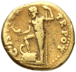 IMP CAESAR VESPASIANVS AVG, Head of Vespasian, laureate, right; globe at point of neck
