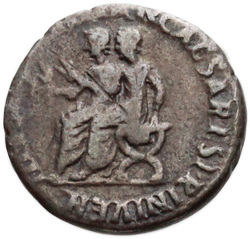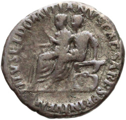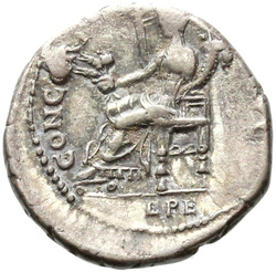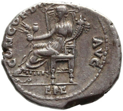 CONCORDIA [AVG] EPE, Ceres, draped, seated left in decorated chair with high back, holding two corn-ears and poppy in right hand and cornucopia in left