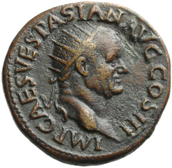 IMP CAES VESPASIAN AVG COS III, Head of Vespasian, radiate, right
