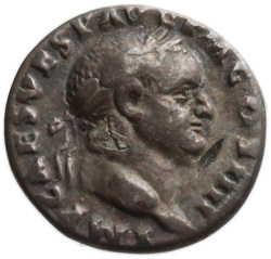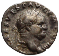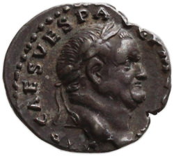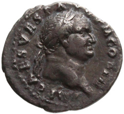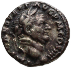 IMP CAES VESPASIAN AVG P M TR P P P COS IIII, Head of Vespasian, laureate, right; globe at point of neck