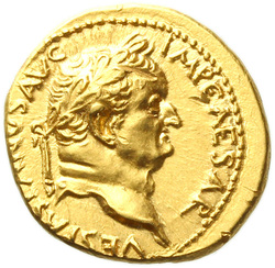 IMP CAES [VESP AVG P M] COS IIII, Head of Vespasian, laureate, right