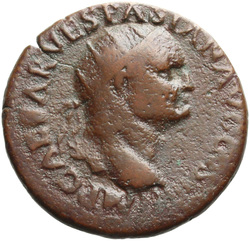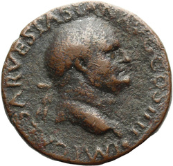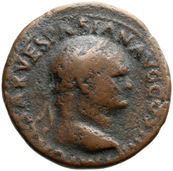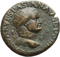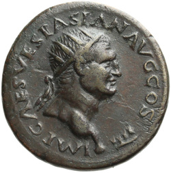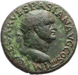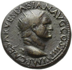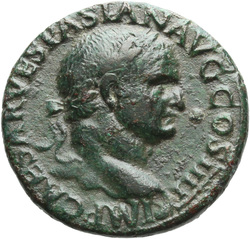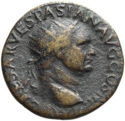 IMP CAESAR VESPASIAN AVG COS IIII, Head of Vespasian, radiate, right