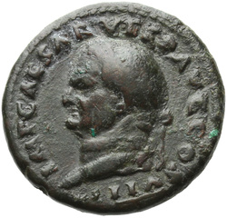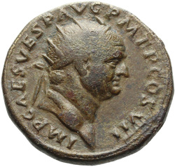 IMP CAES VRSPASIAN AVG P M TR P P P COS VIII, Head of Vespasian, laureate, right; globe at point of neck