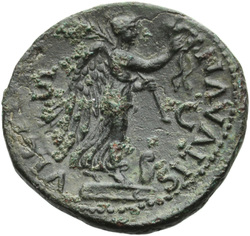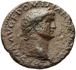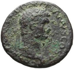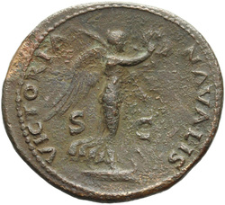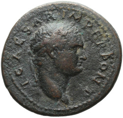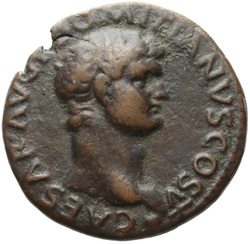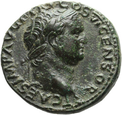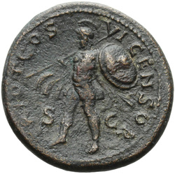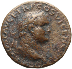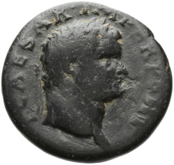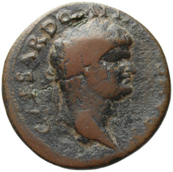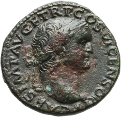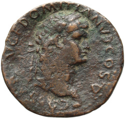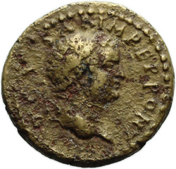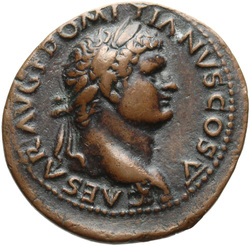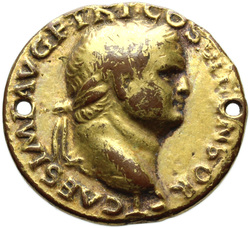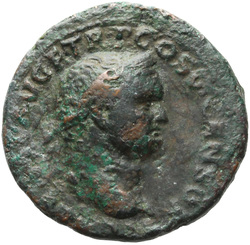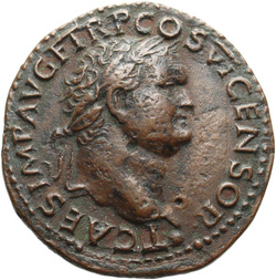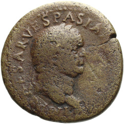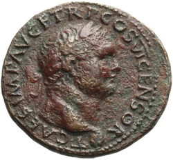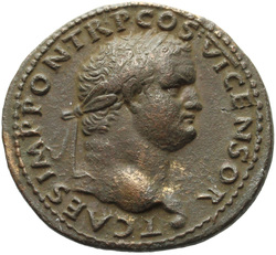 T CAES IMP AVG F TR P COS VI CENSOR, Head of Titus, laureate, right; globe at point of neck