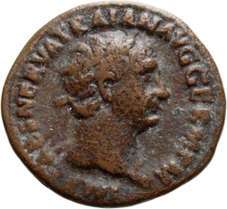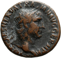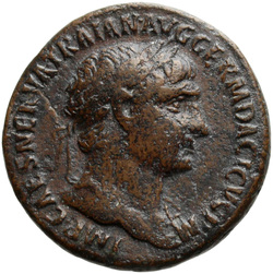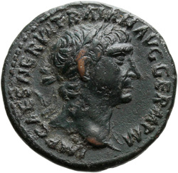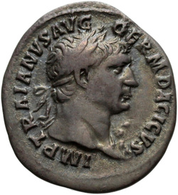 IMP CAES NERVA TRAIAN AVG GERM DACICVS P M, Bust of Trajan, laureate, with aegis on left shoulder, right