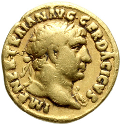 IMP TRAIANO AVG GER DAC P M TR P COS V P P, Bust of Trajan, laureate, with aegis on left shoulder, right