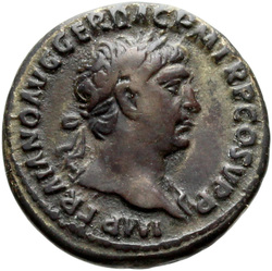 IMP TRAIANO AVG GER DAC P M TR P COS V P P, Bust of Trajan, laureate, with aegis on left shoulder, right