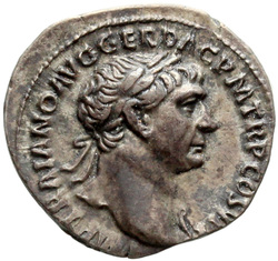 IMP TRAIANO AVG GER DAC P M TR P COS V P P, Bust of Trajan, laureate, with aegis on left shoulder, right