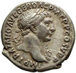 IMP TRAIANO AVG GER DAC P M TR P COS V P P, Bust of Trajan, laureate, with aegis on left shoulder, right