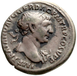IMP TRAIAN[O] AVG GER DAC P M TR P COS V P P, Bust of Trajan seen from behind, laureate, draped, cuirassed, right