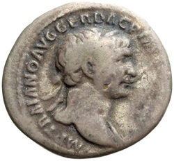 IMP TRAIAN[O] AVG GER DAC P M TR P COS V P P, Bust of Trajan seen from behind, laureate, draped, cuirassed, right