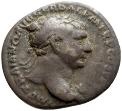 IMP TRAIAN[O] AVG GER DAC P M TR P COS V P P, Bust of Trajan seen from behind, laureate, draped, cuirassed, right