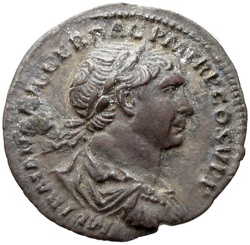 IMP TRAIAN[O] AVG GER DAC P M TR P COS V P P, Bust of Trajan seen from behind, laureate, draped, cuirassed, right