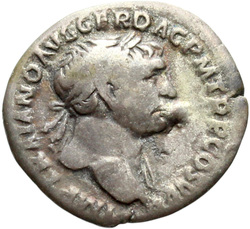 IMP TRAIAN[O] AVG GER DAC P M TR P COS V P P, Bust of Trajan seen from behind, laureate, draped, cuirassed, right