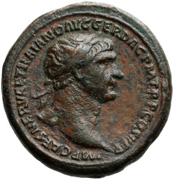 IMP TRAIAN[O] AVG GER DAC P M TR P COS V P P, Bust of Trajan seen from behind, laureate, draped, cuirassed, right