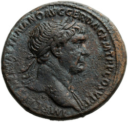 IMP TRAIAN[O] AVG GER DAC P M TR P COS V P P, Bust of Trajan seen from behind, laureate, draped, cuirassed, right