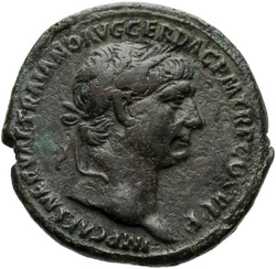 IMP TRAIAN[O] AVG GER DAC P M TR P COS V P P, Bust of Trajan seen from behind, laureate, draped, cuirassed, right