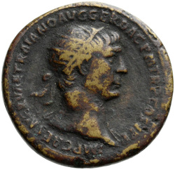 IMP TRAIAN[O] AVG GER DAC P M TR P COS V P P, Bust of Trajan seen from behind, laureate, draped, cuirassed, right