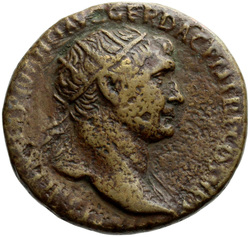 IMP TRAIAN[O] AVG GER DAC P M TR P COS V P P, Bust of Trajan seen from behind, laureate, draped, cuirassed, right