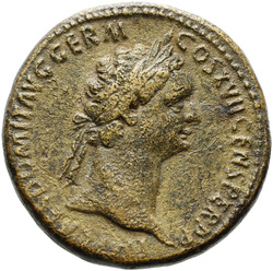 IMP CAES DOMIT AVG GERM COS XVII CENS PER P P, Head of Domitian, laureate, right