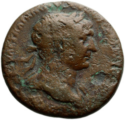 IMP CAES NER]VAE TRAIANO AVG GER DAC [P M TR P] CO[S V P P], Bust of Trajan, laureate, draped on left shoulder, right