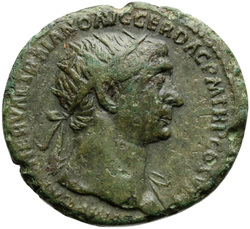 IMP CAES NER]VAE TRAIANO AVG GER DAC [P M TR P] CO[S V P P], Bust of Trajan, laureate, draped on left shoulder, right
