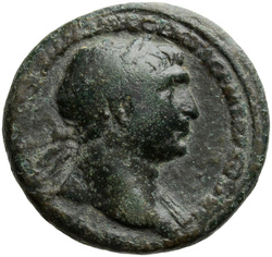 IMP CAES NER]VAE TRAIANO AVG GER DAC [P M TR P] CO[S V P P], Bust of Trajan, laureate, draped on left shoulder, right