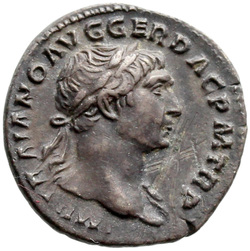 IMP TRAIANO AVG GER DAC P M TR P, Bust of Trajan, laureate, draped on left shoulder, right