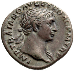 IMP TRAIANO AVG GER DAC P M TR P, Bust of Trajan, laureate, draped on left shoulder, right