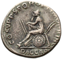 IMP TRAIANO AVG GER DAC P M TR P, Bust of Trajan, laureate, draped on left shoulder, right