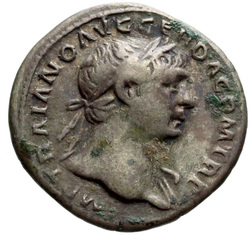 IMP TRAIANO AVG GER DAC P M TR P, Bust of Trajan, laureate, draped on left shoulder, right