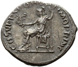 IMP TRAIANO AVG GER DAC P M TR P, Bust of Trajan, laureate, draped on left shoulder, right