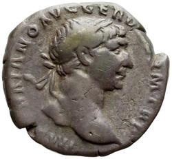 IMP TRAIANO AVG GER DAC P M TR P, Bust of Trajan, laureate, draped on left shoulder, right
