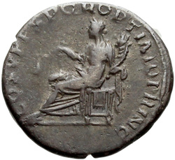 IMP TRAIANO AVG GER DAC P M TR P, Bust of Trajan, laureate, draped on left shoulder, right
