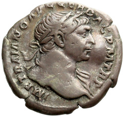 IMP TRAIANO AVG GER DAC P M TR P, Bust of Trajan, laureate, draped on left shoulder, right