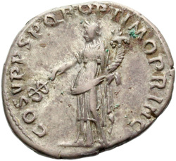 IMP TRAIANO AVG GER DAC P M TR P, Bust of Trajan, laureate, draped on left shoulder, right