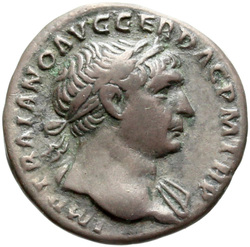 IMP TRAIANO AVG GER DAC P M TR P, Bust of Trajan, laureate, draped on left shoulder, right