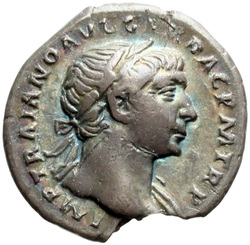 IMP TRAIANO AVG GER DAC P M TR P, Bust of Trajan, laureate, draped on left shoulder, right